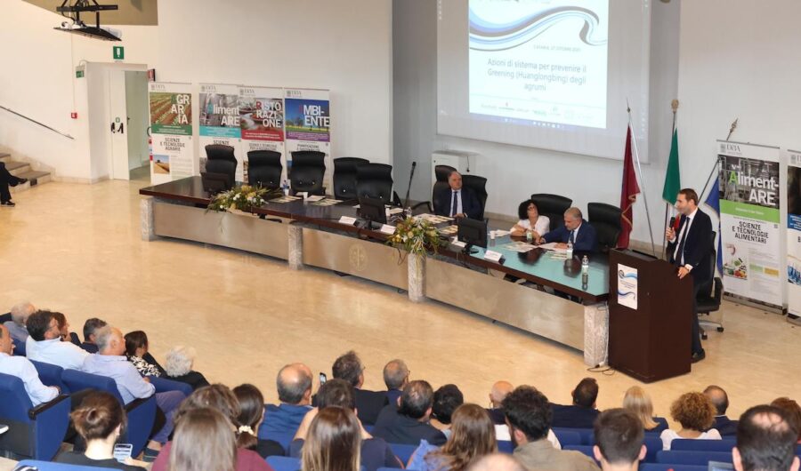 Organizzato dal Distretto Agrumi di Sicilia, il convegno è servito per creare consapevolezza diffusa e sensibilizzare produttori, tecnici ed operatori sull’Huanglongbing e per sollecitare le istituzioni ai diversi livelli affinché si crei la necessaria collaborazione con la comunità scientifica, i produttori e le organizzazioni di categoria per creare strumenti di prevenzione e contenimento capaci di fronteggiare questa minaccia. Insieme a produttori e aziende di commercializzazione, numerose le personalità presenti. Tra queste il Sottosegretario di Stato del Ministero dell’Agricoltura, della Sovranità Alimentare e delle Foreste, Luigi D’Eramo, l’Assessore Regionale Agricoltura, Sviluppo Rurale e Pesca Mediterranea, Luca Sammartino, e il componente della Commissione Agricoltura della Camera dei Deputati, Giuseppe Castiglione.